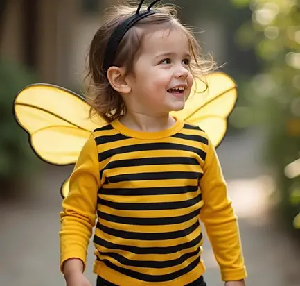- חולצה צהובה חלקה - סרט בד שחור (לפסים) או צבע לבד שחור - מכנסיים שחורים / טייץ שחור. לכנפיים: